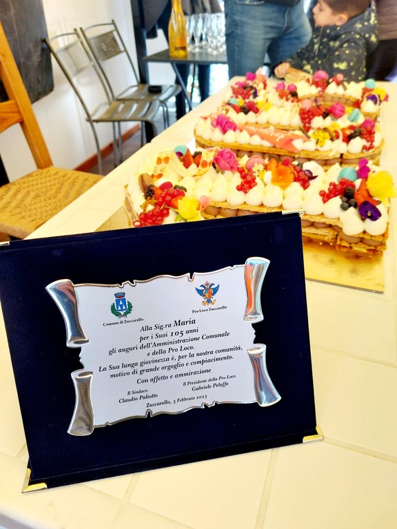 Una targa commemorativa il regalo di compleanno riservato a Maria: "La sua lunga giovinezza è, per la nostra comunità, motivo di grande orgoglio e compiacimento" si legge sull'omaggio consegnato da amministrazione e Pro Loco.