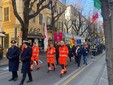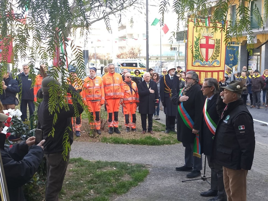 Una protesta civile e silenziosa da parte dei Fieui di caruggi di Albenga oggi in piazza XX Settembre, davanti al monumento all'Alpino, in occasione della commemorazione della battaglia di Nikolayewka voluta, come ogni anno, dal Gruppo Alpini di Albenga.