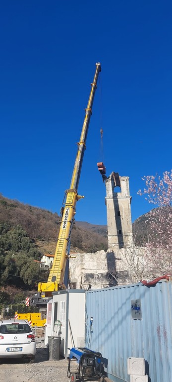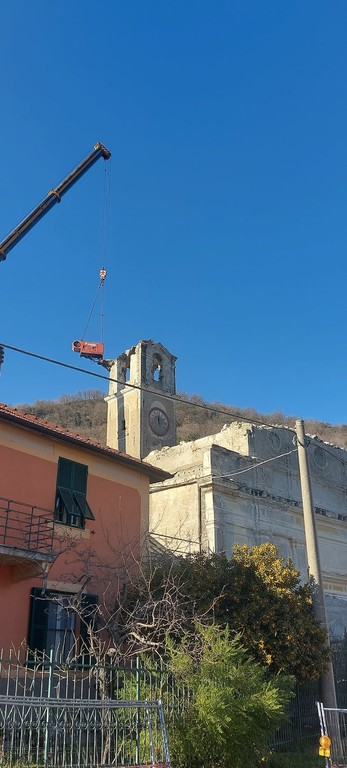 "In particolare con lautorizzazione della Sovrintendenza, l'impresa incaricata dalla diocesi, sta provvedendo ad abbassare il campanile oltre alla demolizione della canonica adiacente e di ulteriori porzioni della chiesa - dice il sindaco Luigi Pierfederici - Le demolizioni in corso d'opera, una volta terminate, permetteranno il raggiungimento di un maggiore livello di sicurezza".