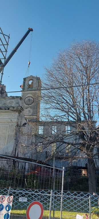 Prima di Natale era stato realizzato un ponteggio strutturale utile per il contenimento della facciata della chiesa consentendo il transito delle auto in sicurezza e dal 27 al 29 dicembre era stata interdetta la circolazione per consentire le operazioni di demolizione delle porzioni più pericolanti.