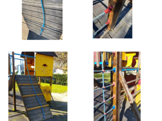 Nei giochi del parco di Palazzo Morandi è stato stuccato il palo di protezione e sono stati posizionati i tappi rossi protettivi (sarà sostituita la rete di arrampicata). Al parco di Leca saranno sostituite le corde di arrampicata.