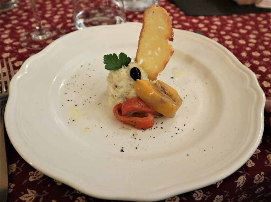 poi il classico “branda” dove la patata addomesticava il sapore dello stoccafisso, quasi nascosto, che veniva ripreso e rilanciato dalla presenza dei peperoni con le acciughe.