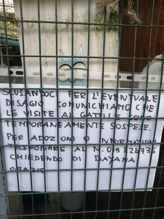 "Scusandoci per l'eventuale disagio comunichiamo che le visite al gattile sono temporaneamente sospese".