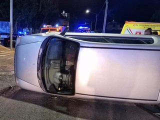 Incidente stradale intorno alle 19.30 in via Silvio Amico a Loano dove un'automobile, in seguito ad un violento tamponamento con un'altra auto, si è cappottata.