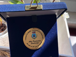Una targa in argento è stata consegnato ieri nelle mani di Franco e Bruna Sanlorenzo, accompagnati dal figlio Alberto, per gli oltre cinquant'anni di attività presso l'omonima pasticceria di Via Torino.