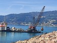 Le operazioni stanno naturalmente suscitando la curiosità dei visitatori del porto che si fermano ad ammirare sul belvedere i movimenti della grande gru posta sul pontone che con un grande artiglio posa i massi. Sotto il pelo dell’acqua l’operazione è complessa e accurata.