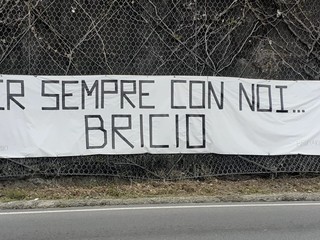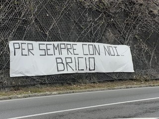 "Per sempre con noi... Bricio". Poche ma significative parole per ricordare un amico che non c'è più, affidate ad uno striscione appeso lungo la via Aurelia a Savona, in prossimità di Largo De Meo.