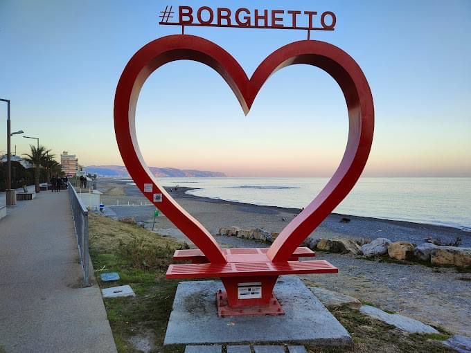 Raddoppiano i cuori di Borghetto. In occasione delle Festività Pasquali e dei ponti di primavera previsti tra il 25 aprile e il primo maggio è stata posizionata, oltre a quella ormai famosissima di Piazza Pelagos, una seconda Panchina dell’Amore in Piazza Libertà, di fronte a Palazzo Pietracaprina.