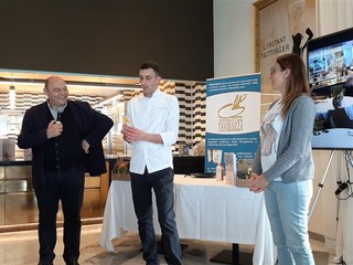 Il famoso pastry chef ha presentato di fronte ad un pubblico di oltre 100 persone una sua deliziosa creazione: “I fiori nella dolce cucina; Crostata al limone e fragole con Nasturzio”.