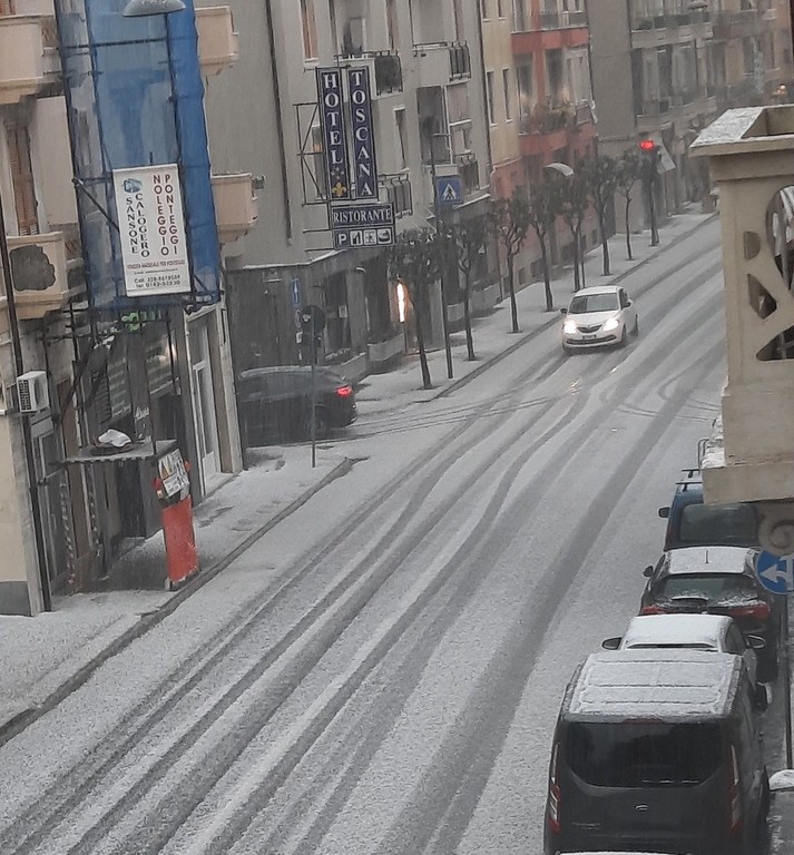 Violenta grandinata nel ponente savonese. Attorno all'ora di pranzo le strade di Alassio si sono imbiancare in pochissimo tempo.