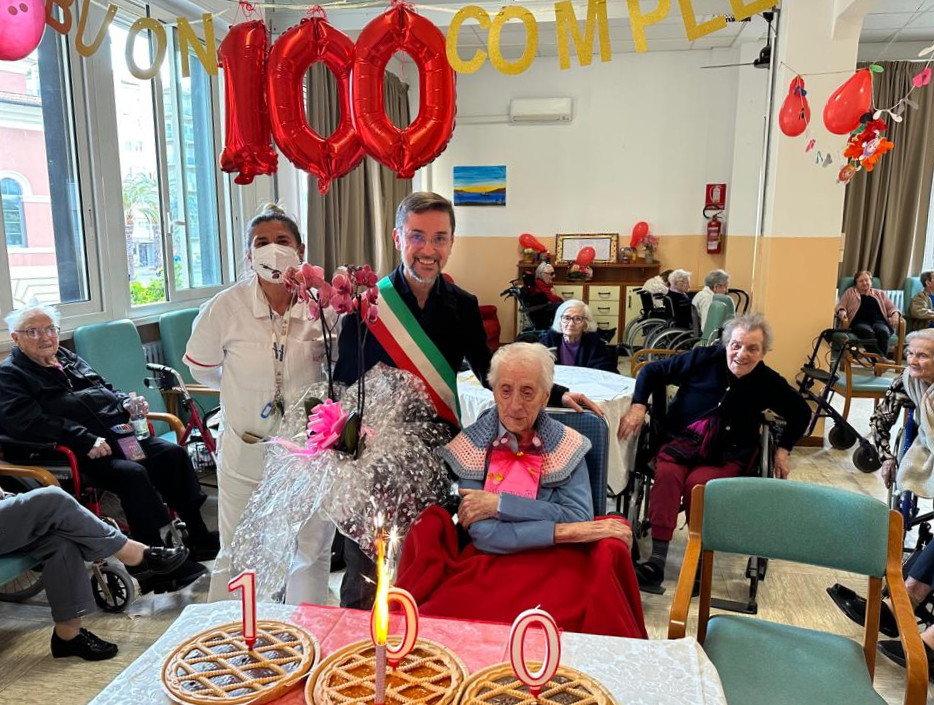 Festa, alla residenza protetta Ramella di Loano, per i 100 anni di Luigina Boccalatte.