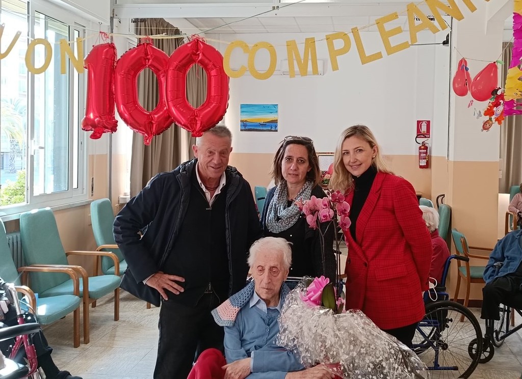 Sempre allegra, sorridente, generosa e pronta ad aiutare, ieri Luigina è stata festeggiata dagli ospiti e dallo staff della Rp loanese, dal sindaco di Loano Luca Lettieri e dal vice Gianluigi Bocchio, che per l'occasione le hanno donato un omaggio floreale.