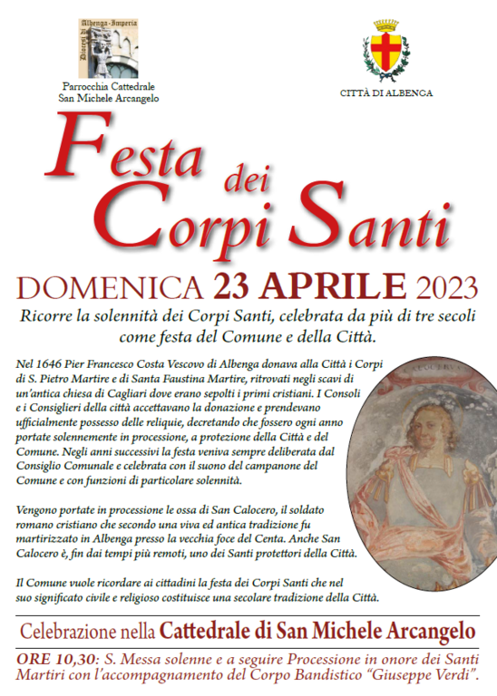 Domenica 23 aprile ricorre la solennità dei Corpi Santi, celebrata da più di tre secoli come festa del Comune e della Città di Albenga.
