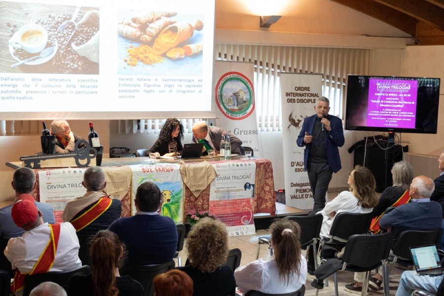 Alla base della “Divina Trilogia”, dunque, tutti i come e i perché di un rapporto virtuoso basato sulla giusta misura, ma anche sul grande valore aggiunto del territorio di provenienza, un immenso cantiere di contenuti e progetti in divenire in cui si sono inseriti gli interventi e le esperienze di Guido Groppo (presidente COALVI), Dario Perucca (fondatore della Confraternita del Bue grasso di Carrù e del Campionato nazionale di Battuta al coltello di Trinità) e Sylvain Bottone (Centro Genetico di ANABORAPI), energicamente moderati dalla giornalista e divulgatrice agro-scientifica Renata Cantamessa.