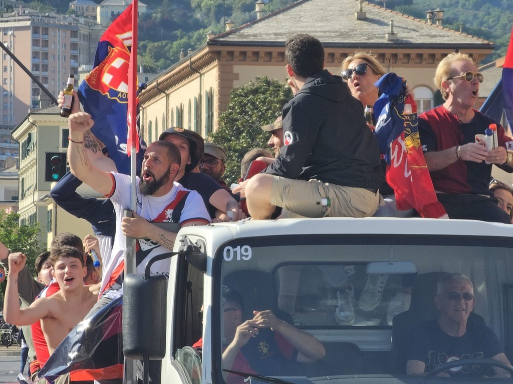 Genoa in Serie A, il carosello di giocatori e tifosi in centro: