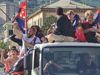 Genoa in Serie A, il carosello di giocatori e tifosi in centro: