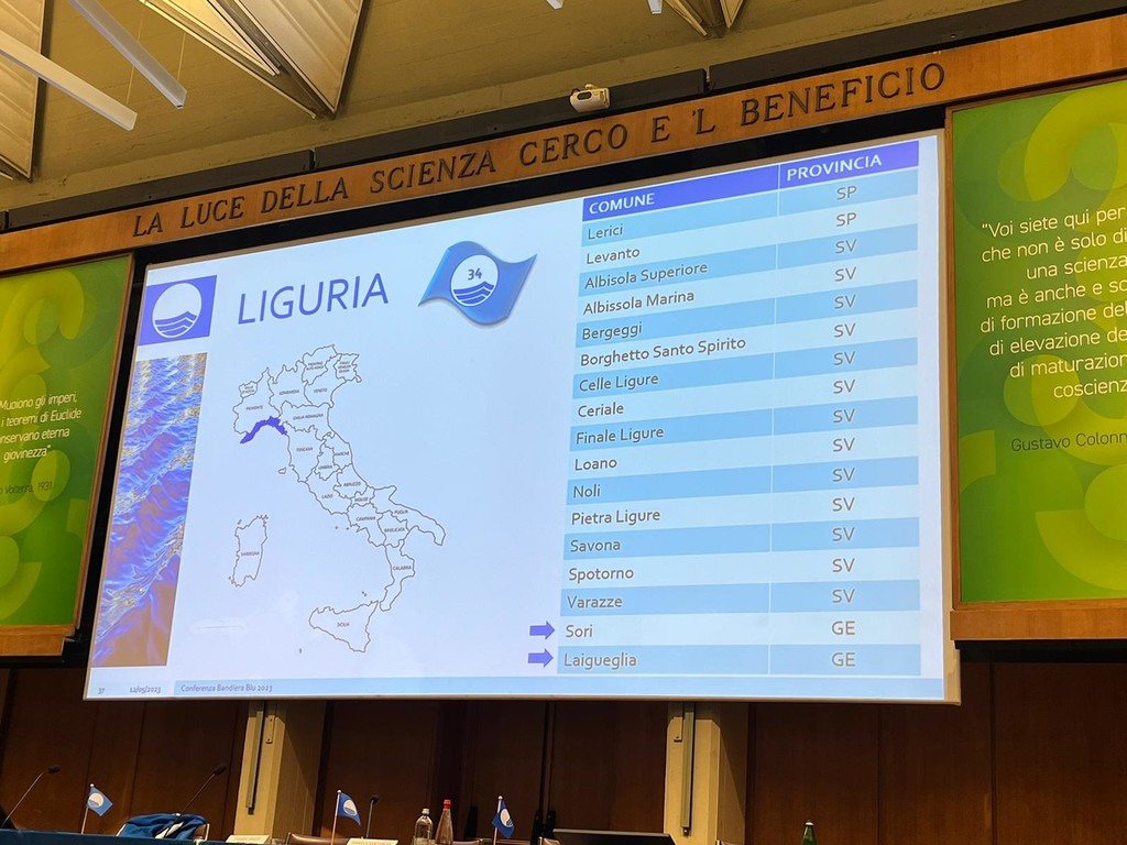 L'ufficialità, diramata con una cerimonia di premiazione svoltasi a Roma nei locali della sede del CNR, alla presenza del Ministro del Turismo, la senatrice Daniela Santanchè, ha visto la conferma per i comuni di Ceriale, Borghetto Santo Spirito, Loano, Pietra Ligure, Finale Ligure, Noli, Spotorno, Bergeggi, Savona, Albissola Marina, Albisola Superiore, Celle Ligure e Varazze. Tra le new entry spicca il nome di Laigueglia.