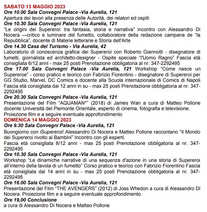 Un evento che intende presentare al pubblico la figura poliedrica del “Supereroe” approfondendo diverse discipline quali storia, educazione civica, educazione artistica, letteratura, storia dell’arte e valori morali.
