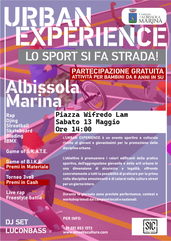 "Urban Experience", lo sport si fa per strada. Tutto pronto per l'evento in programma sabato 13 maggio ad Albissola Marina, in piazza Wifredo Lam, con inizio alle ore 14.