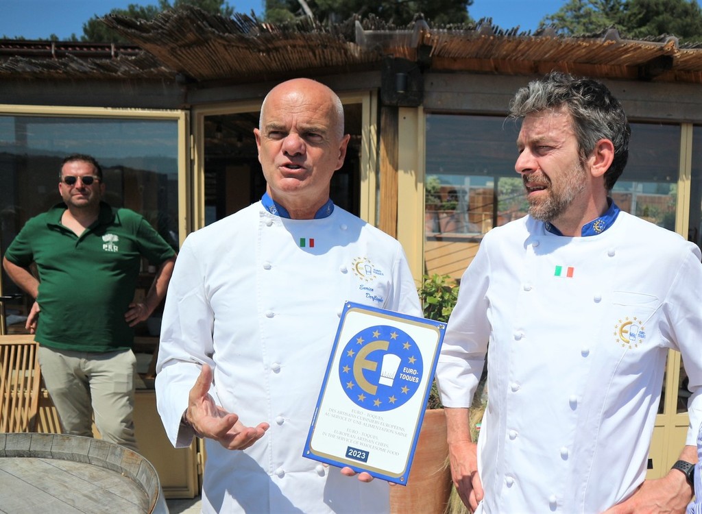 Diversi gli chef liguri aderenti a Euro-Toques presenti alla cerimonia della consegna della targa allo chef del ristorante Vignamare, Stella Verde Michelin, e legato da anni da grande amicizia con Enrico Derflingher, che lavora con impegno per far crescere l’associazione fondata in Italia da Gualtiero Marchesi e che oggi conta circa 300 aderenti.