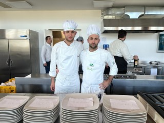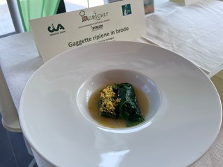 Emanuele, accompagnato dal docente di cucina Antonio Cefalo, ha partecipato con l’agrichef Mario Armanino dell'agriturismo La Cuccagna di Rapallo realizzando il piatto “gaggette ripiene in brodo di gallina".