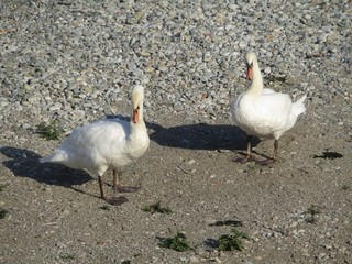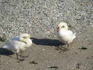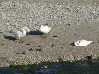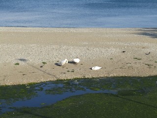 Tre cigni alla foce del torrente Letimbro a Savona.