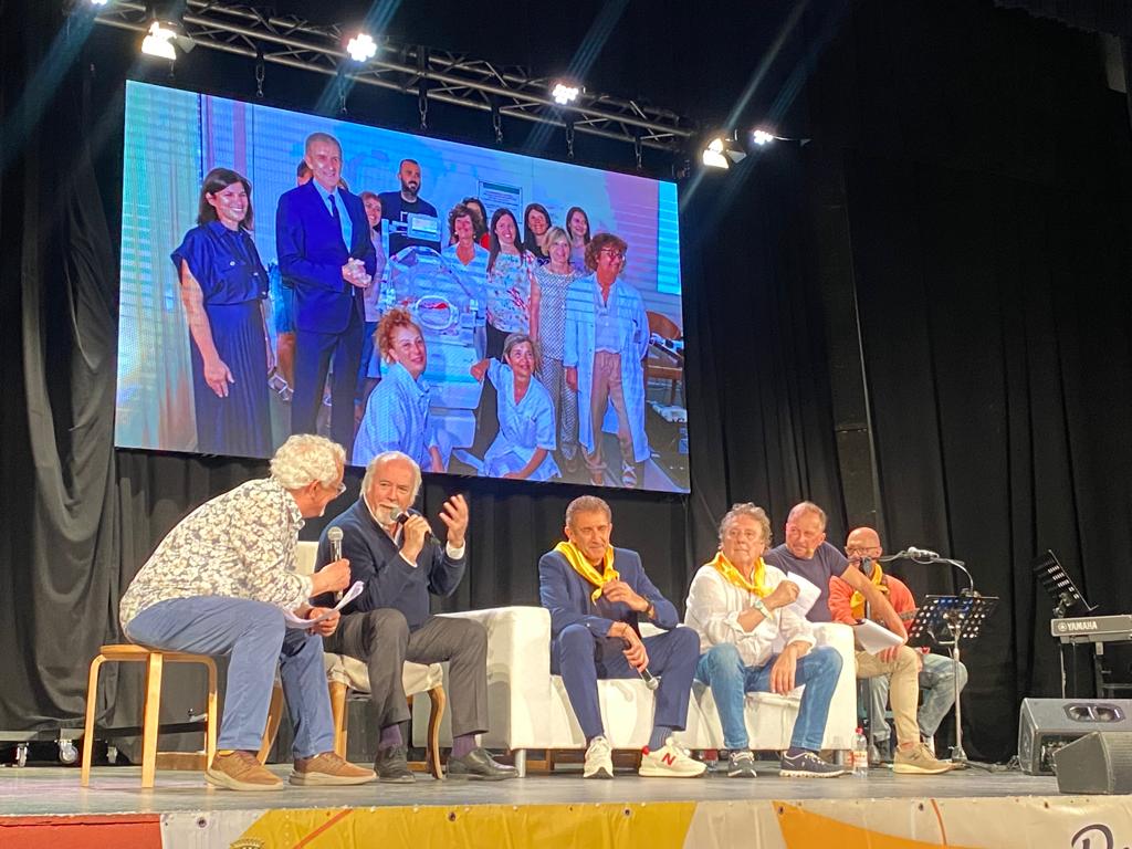 Ezio Greggio, da parte sua, ha rivolto il suo impegno verso i bimbi nati prematuri, fornendo a decine di ospedali italiani e stranieri incubatrici e culle termiche, contribuendo a salvare, secondo i dati della Società Italiana di Pediatria e Neonatologia, migliaia di bambini. Davvero commovente l’ospitata sul palco della giovanissima Francesca, albenganese di 15 anni, “salvata” proprio da una di queste incubatrici, che ha potuto testimoniare l’importanza di questo impegno solidale.