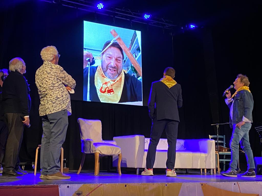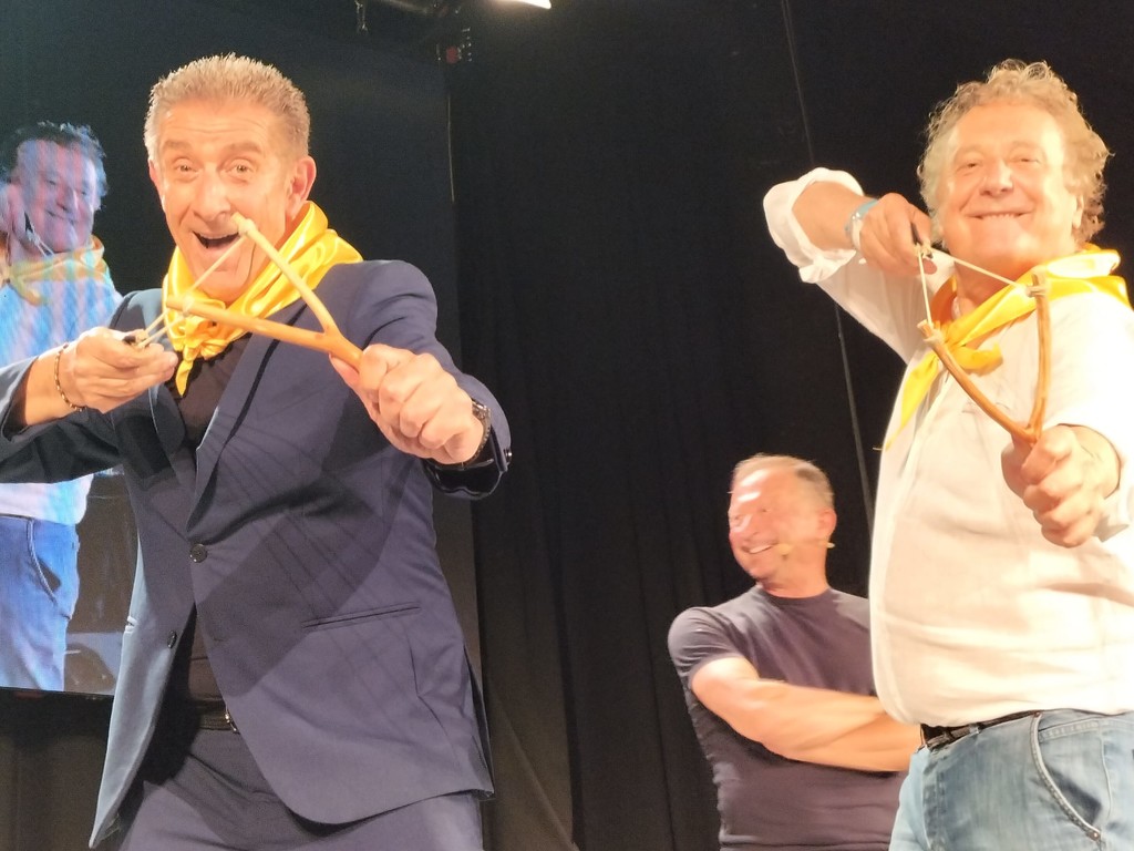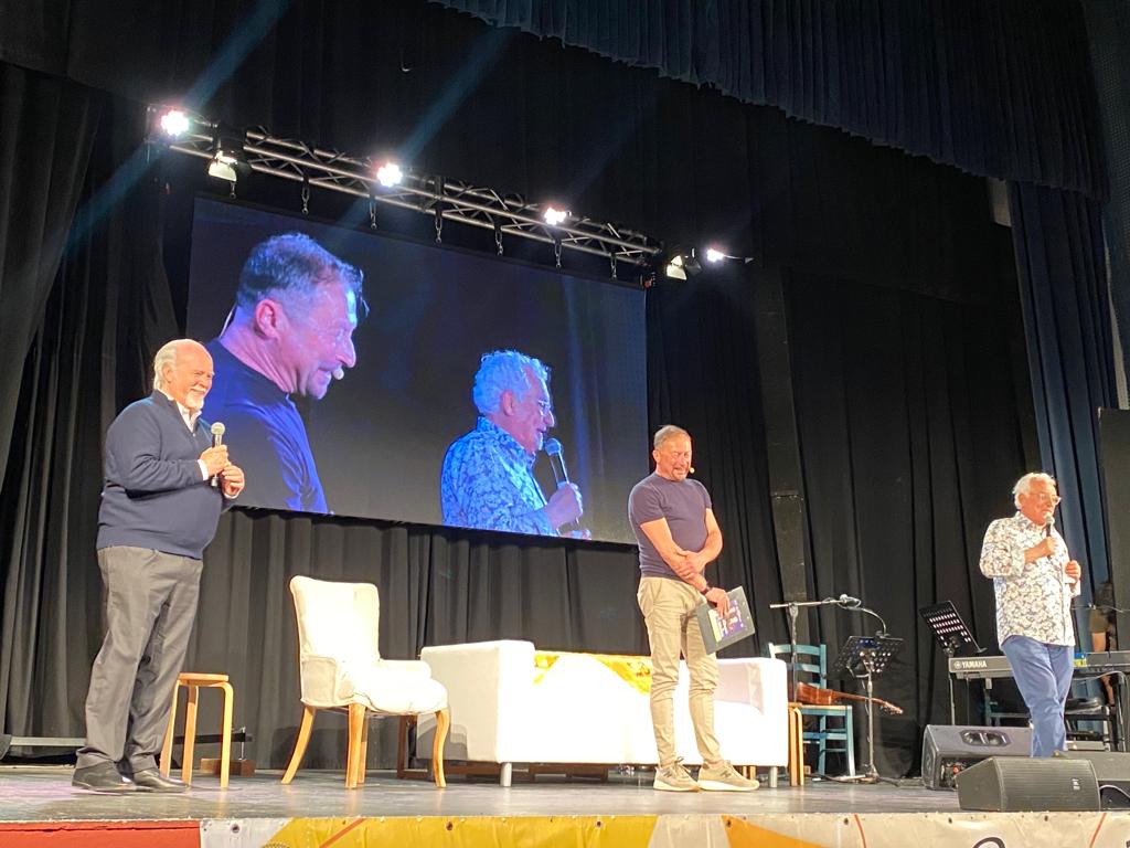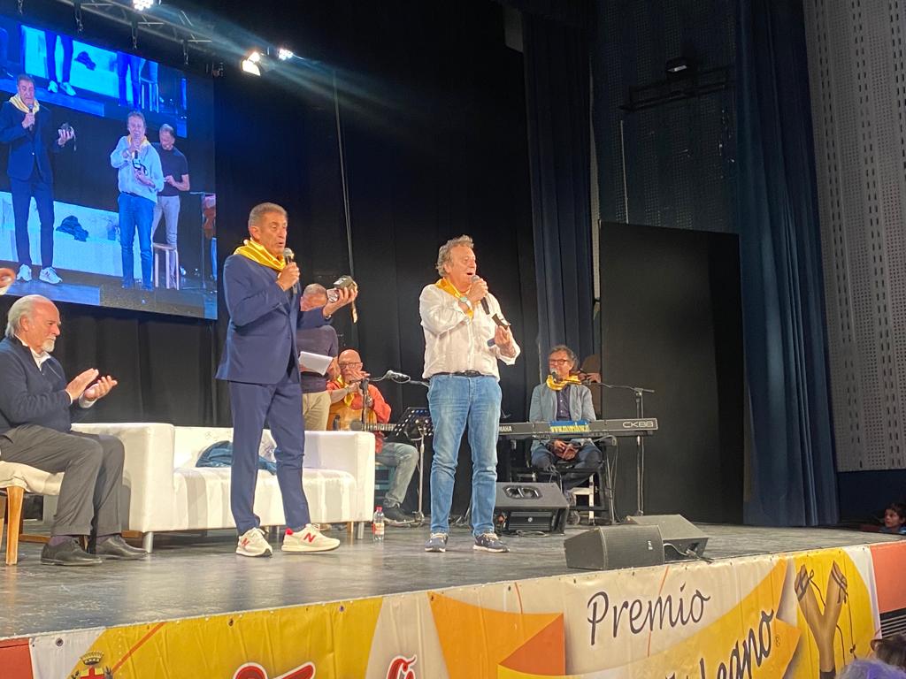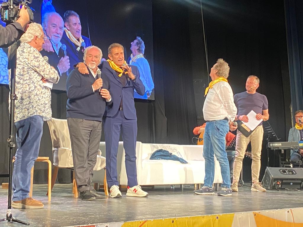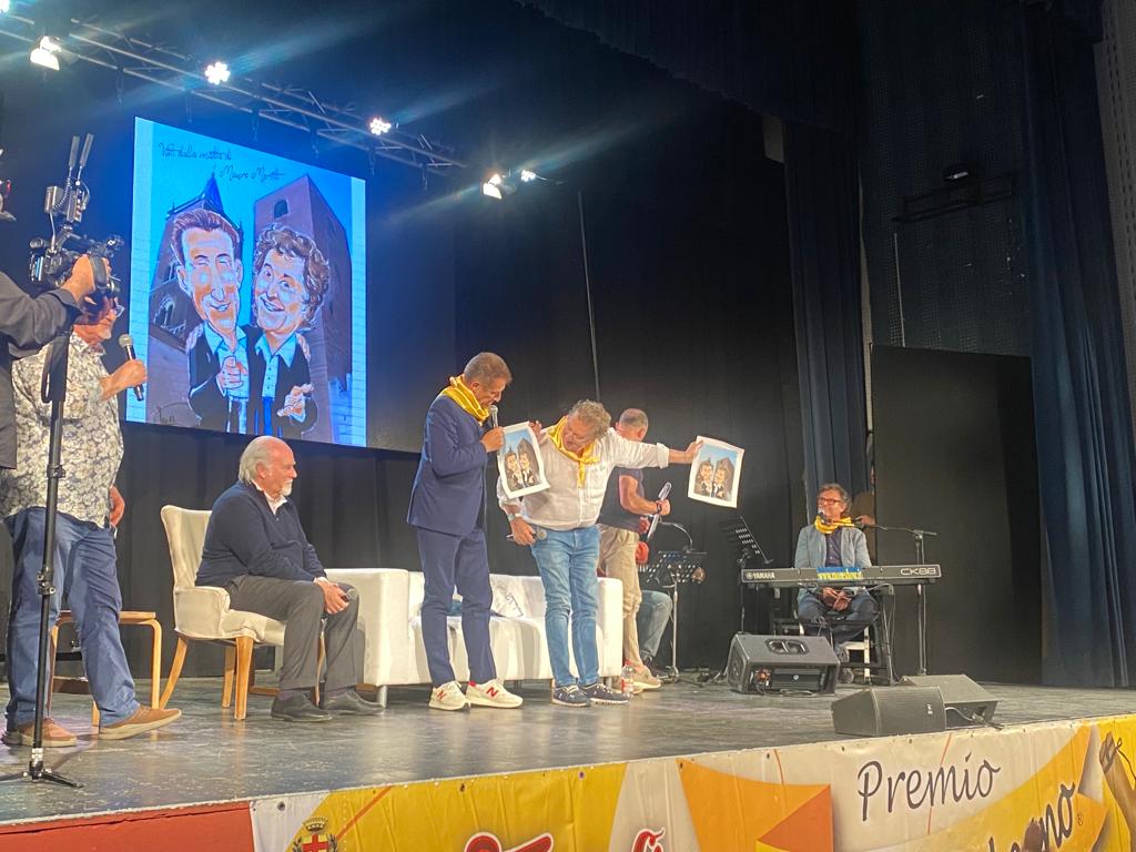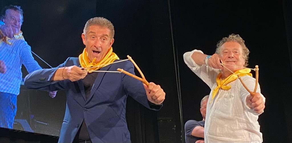 In un Teatro Ambra gremito, al massimo della capienza, Ezio Greggio ed Enzo Iacchetti hanno ricevuto il Premio Fionda di Legno 2023 da Antonio Ricci dei Fieui di caruggi di Albenga. “Ci hanno premiato con la fionda e noi ci siamo fiondati ad Albenga”, hanno scherzato i due comici. Aneddoti, risate, buonumore, ma anche solidarietà, emozioni e qualche lacrima.