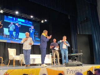 In un Teatro Ambra gremito, al massimo della capienza, Ezio Greggio ed Enzo Iacchetti hanno ricevuto il Premio Fionda di Legno 2023 da Antonio Ricci dei Fieui di caruggi di Albenga. “Ci hanno premiato con la fionda e noi ci siamo fiondati ad Albenga”, hanno scherzato i due comici. Aneddoti, risate, buonumore, ma anche solidarietà, emozioni e qualche lacrima.