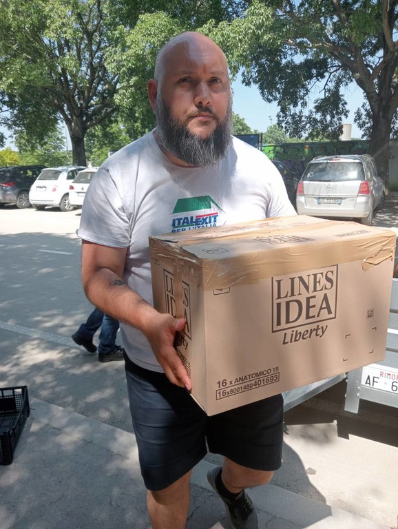 dell’Emilia – Romagna organizzata da Italexit per l’Italia – Liguria, che ha visto il coordinatore regionale Fabio Montorro e il responsabile organizzativo Regionale Ilario Chiera consegnare il raccolto insieme al coordinamento provinciale di La Spezia di due furgoni, di cui uno con appendice all’hub di smistamento a Cesena.