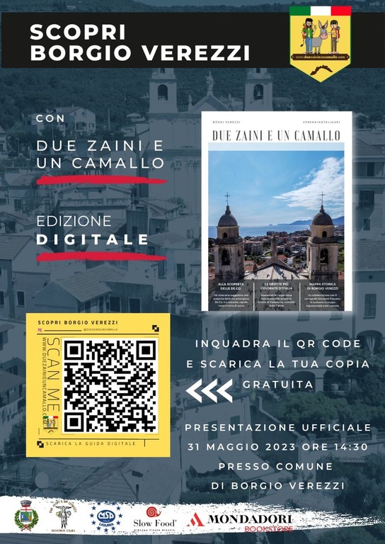 Dopo mesi di ricerca e lavoro, è da pochi giorni on-line sul sito comunale www.visitborgioverezzi.it e sul sito dell’Associazione Due Zaini e Un Camallo il nuovo sfogliabile digitale e interattivo dedicato a Borgio Verezzi, con articoli, foto e contenuti multimediali scaricabili che raccontano in modo moderno e intrigante le bellezze e le risorse di Borgio Verezzi, con le sue attrattive, le Grotte, i sentieri e percorsi, le De.Co. e molto altro.
