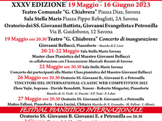 A Savona, all'Oratorio dei SS. Giovanni e Petronilla, sabato 3 giugno quarto appuntamento per i Concerti di Primavera per Accelerando Festival XXXV edizione.