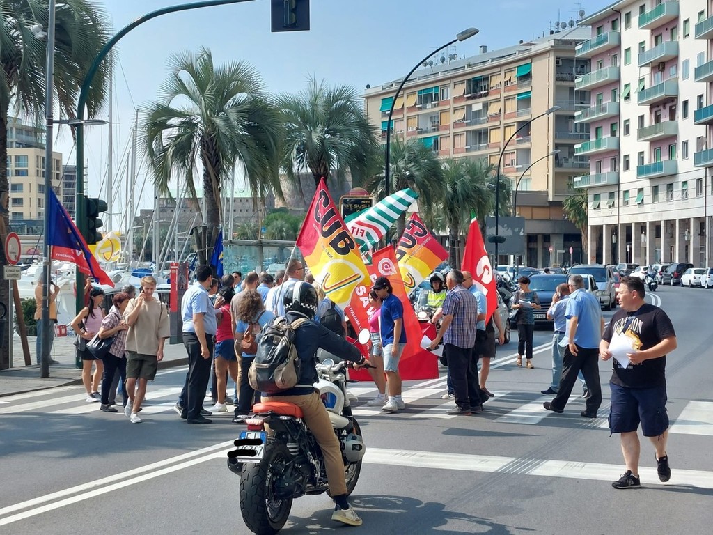 L'rsu aziendale e i sindacali hanno così presidiato questa mattina la zona della Torretta tra via Gramsci e Piazza Leon Pancaldo.