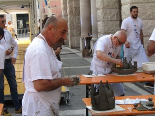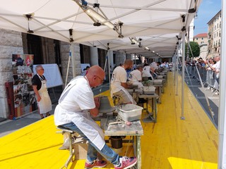 Questo lo scenario che si può vedere oggi in Piazza Sisto a Savona per il Mondiale Tornianti in Tour organizzato nella 4 giorni del Festival della Maiolica, con veri e propri duelli al tornio divisi in più batterie con l'argilla vero protagonista.