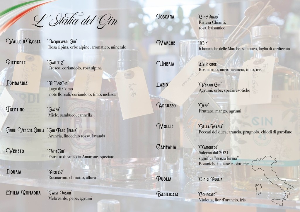 La serata “L’Italia del Gin” presenterà una selezione di gin artigianali, uno per ogni regione italiana, oltre ad alcuni grandi marchi di altre nazioni.