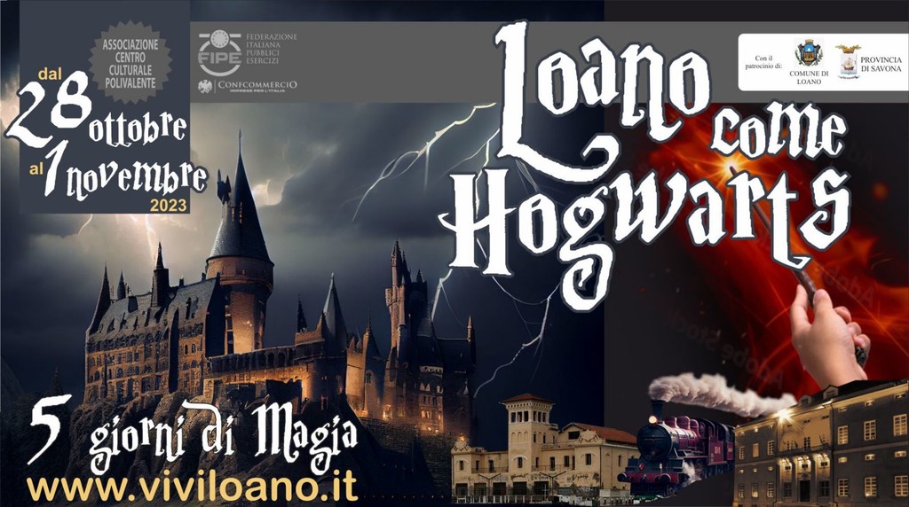 Dal 28 ottobre al 1° novembre Loano si trasformerà nella scuola di magia più celebre del cinema. “Loano come Hogwarts” sarà infatti la manifestazione, la più grande in Italia, che per cinque giorni permetterà di vivere il mondo di Harry Potter con lo shopping nei negozi di Diagon Alley, il viaggio sull'Hogwarts Espress; la “Cerimonia dello Smistamento” nelle casate, le lezioni di magia, quelle di pozioni e di divinazione; il “Ballo del Ceppo”, le parate e gli spettacoli itineranti e, per finire, tantissime cene a tema.