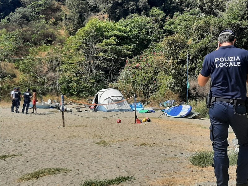 Nei controlli della polizia locale, ieri mattina sulle spiagge savonesi, sono 14 i campeggiatori abusivi sanzionati.