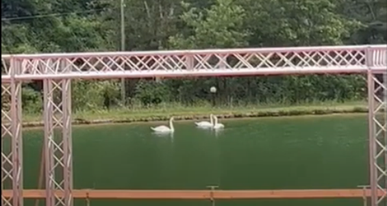 Una bellissima sorpresa ha accolto questa mattina gli organizzatori del Rokkafest. Tre cigni hanno fatto capolino nelle acque dei laghetti del Dolmen.
