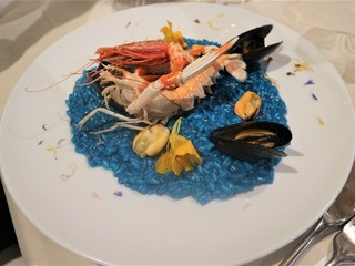 Risotto “Frida” con bisque di Gamberi, Pescatrice, Cozze e Agerato