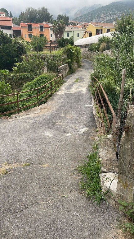 Il secondo intervento risulta più corposo in quanto interessa la strada che si diparte dal ponte medievale sul Torrente Varatella e si sviluppa lungo la sua sponda sinistra; essa rappresenta un importante collegamento con il vicino Comune di Boissano e di accesso ad un’ampia porzione del territorio toiranese fittamente insediato. Oggi l’intervento assume il carattere di strategico anche perché a breve confluirà su via Costa anche il traffico della nuova strada della Località Orti Pagliacci, in via di collaudo.