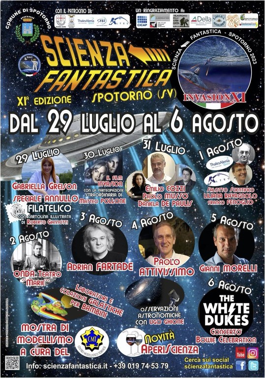 A dare lustro alla manifestazione è, anche questa volta, l’autorevolezza dei patrocini riconosciuti: Regione Liguria, Provincia di Savona, Thales Alenia Space, Altec, ESA, ASI, INAF.