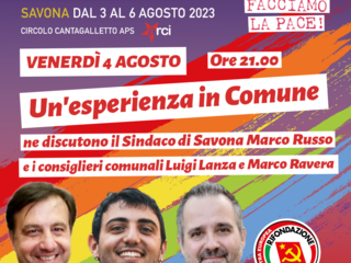 Venerdì 4 agosto, invece, dal piano internazionale a quello locale, il dibattito ospitato alla festa verterà sulle questioni che riguardano il Comune di Savona: per l’appunto di “Una esperienza in Comune” dialogheranno il Sindaco di Savona Marco Russo e i consiglieri comunali di A Sinistra per Savona Luigi Lanza e Marco Ravera, coordinati da Giovanna Servettaz de “La Nuova Savona“.