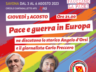 E proprio al tema del conflitto sviluppatosi ormai un anno e mezzo fa, che si unisce alle tante guerre sparse per il mondo e di cui molto poco si parla, è dedicato il primo dibattito della quattro giorni a Cantagalletto, “Pace e guerra in Europa“: giovedì 3 agosto, alle ore 21.00, coordinati da Franco Zunino, interverranno: Angelo d’Orsi, storico e già docente di storia delle dottrine politiche all’Università di Torino; il giornalista Carlo Freccero, autore, direttore e critico televisivo; Anna Camposampiero, responsabile comunicazione della Segreteria nazionale di Rifondazione Comunista.