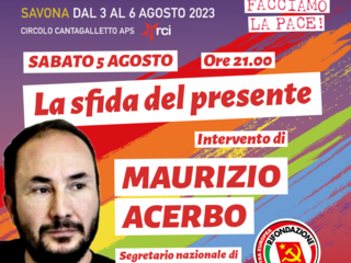 Sabato 5 agosto si darà invece uno sguardo alla situazione attuale della sinistra in Italia, in Europa e nel mondo. La complessità del passato che abbiamo alle spalle, eredità a volte necessaria e a volte ingombrante da portare sulle piccole spalle di un progressismo tanto variegato quanto ristretto in una ridotta tutta moderna, sarà il tema del dibattito intitolato “La sfida del presente“: interverranno Walter Surano, Segretario provinciale di Rifondazione Comunista, Jacopo Ricciardi e Claudia Rancati, co-segretari liguri del Partito e, infine, del Segretario nazionale Maurizio Acerbo.