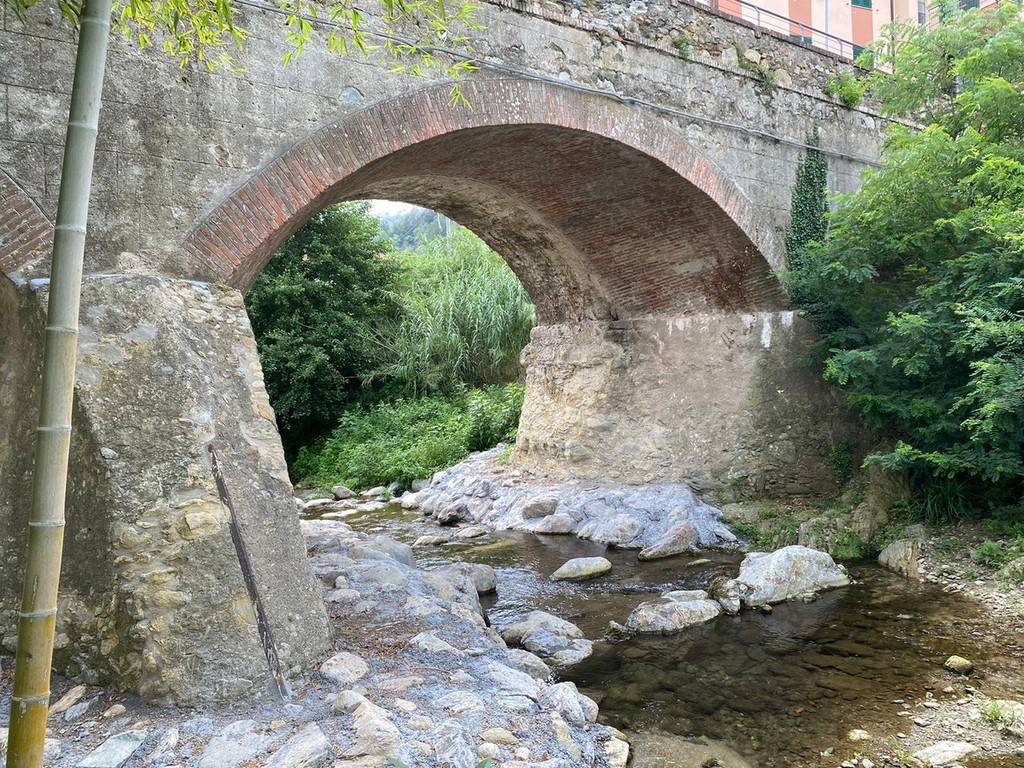 A ricordare la storia dell'infrastruttura è lo storico locale Angelo Tortarolo, riportando come da un manoscritto di Nicolò Cappellini si legga: "Il 3 ottobre 1750 un temporale con vento di libeccio e un diluvio di acqua, si è allagata la fiumara, da una parte all’altra da Rialto alla Marina non vi ha lasciato tracce né di terra ed orti e dei vari ponti".