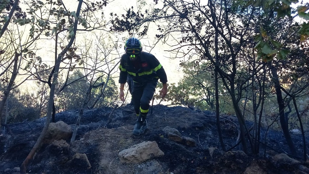 Fiamme nei boschi dell'entroterra ingauno: in azione AIB e vigili del fuoco con l'elicottero (FOTO)