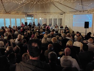 Più di 500 persone, una sms Serenella più che gremita ieri ha partecipato all'incontro alle Fornaci a Savona dal titolo "Le verità nascoste (a 2.9 km dalla costa)".