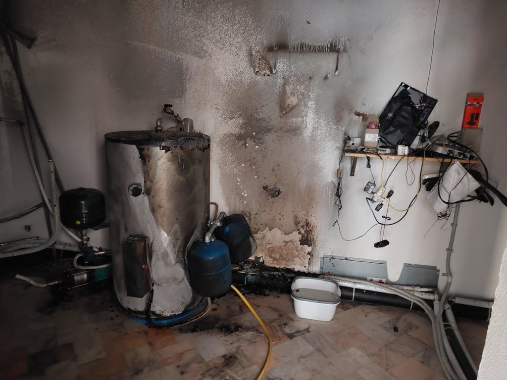 Un fulmine è entrato nella linea telefonica e ha dato vita ad un corto circuito facendo scoppiare così l'incendio che ha coinvolto anche un carrello con degli asciugamani.