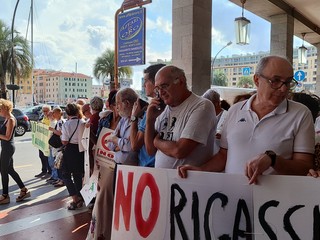 I comitati contrari al riposizionamento hanno atteso il governatore e commissario all'esterno dell'Unione Industriali. La replica a distanza: "Abbiamo una visione del mondo diversa, quest'opera è opportuna e strategica"