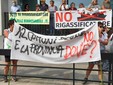 Cori, fischi, striscioni, trombe da stadio, il blocco della strada che non era previsto, per dire il proprio no secco al progetto. Non sono mancati anche gli slogan all'urlo di "Vergogna, vergogna" all'arrivo del presidente regionale Giovanni Toti che non è passato dall'ingresso principale ma dal parcheggio sotterraneo.